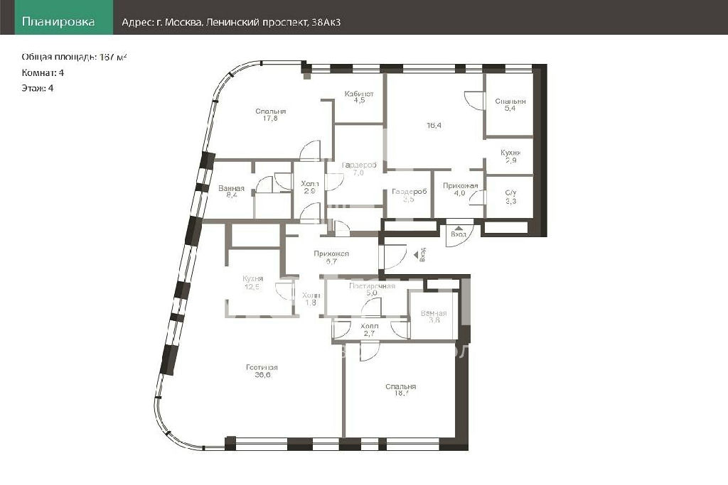 ID 23255 Предлагаются 4-комнатные апартаменты в жилом комплексе Ленинский, 38.
